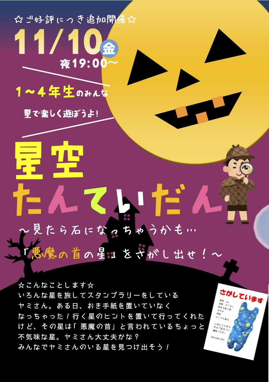 満員御礼!星空たんてい団~見たら石になっちゃう?あくまの星を探し出せ~ へ戻る