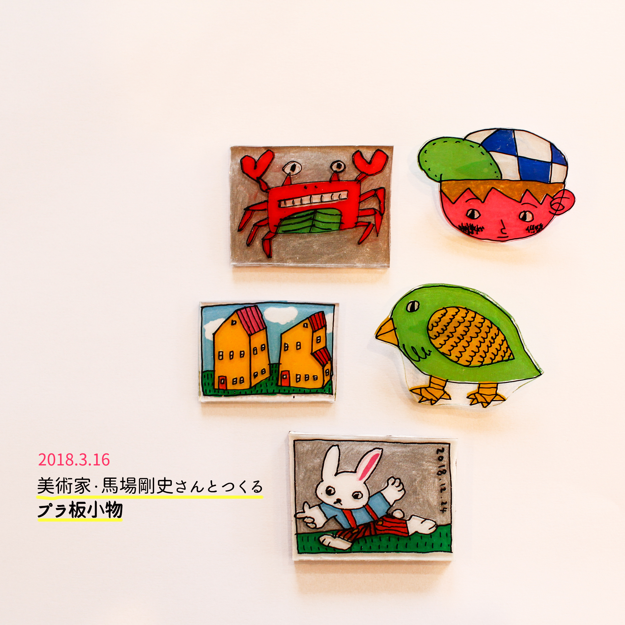 「プラ板」は、プラスチックの板に絵を描いてオーブンで焼いたもの。自分で絵を描き、好きな形に切り取って作ります。できあがったプラ板にブローチや磁石プレートなど、パーツを加えて自分だけの「お宝」を作りましょー! 今回は、おなじみのあの画材を使って、子どもも大人も、絵の苦手な方でも、誰でも上手に仕上げるコツを教えていただきながら、楽しく作ります。
