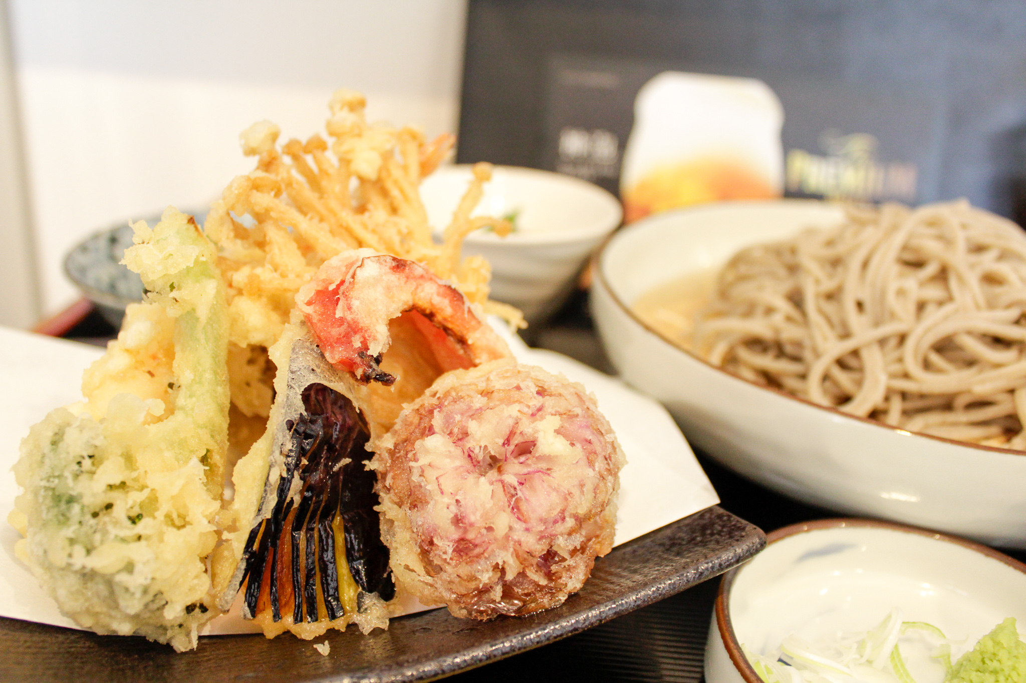 ランチの「手打ちそばセット」750円に+50円で、センティッド・ジュエルの天ぷらが付きます。