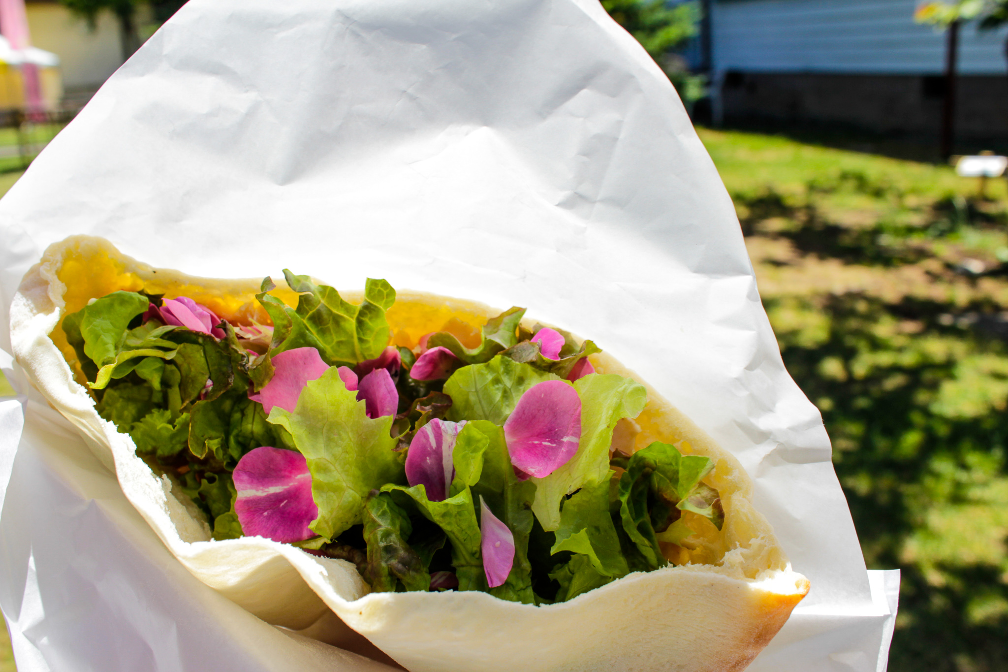 「信州なかのバラまつり」会場にて、 中野市産エディブルローズを添えたサラダスパゲティを販売しました。