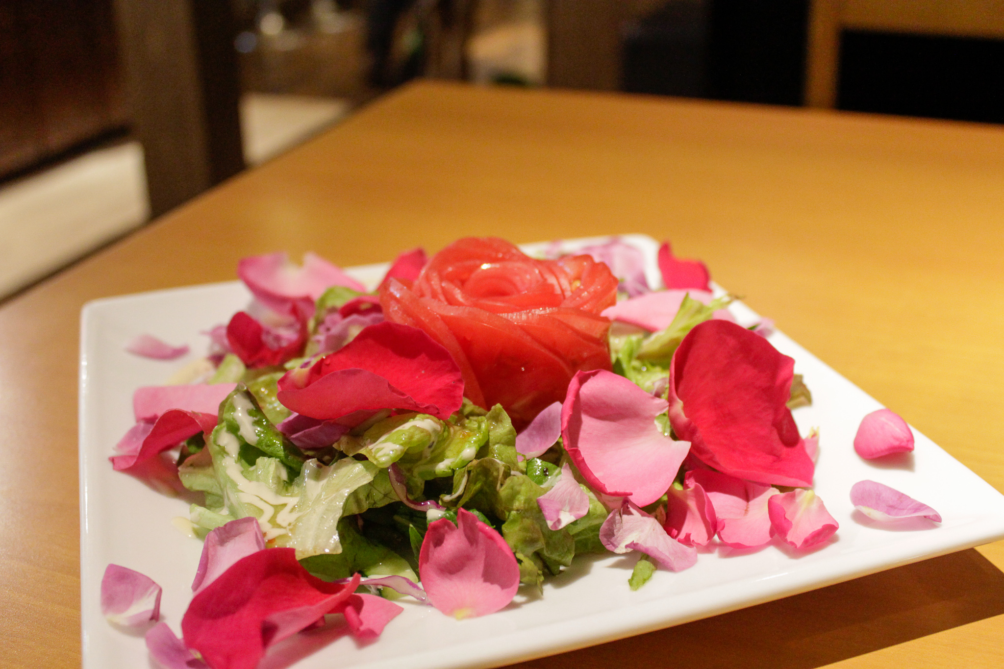 バラは、ビタミンAやC、ポリフェノール、食物繊維が豊富な食材。美肌や健康に気遣う方に、たっぷり食べてほしいメニューです。