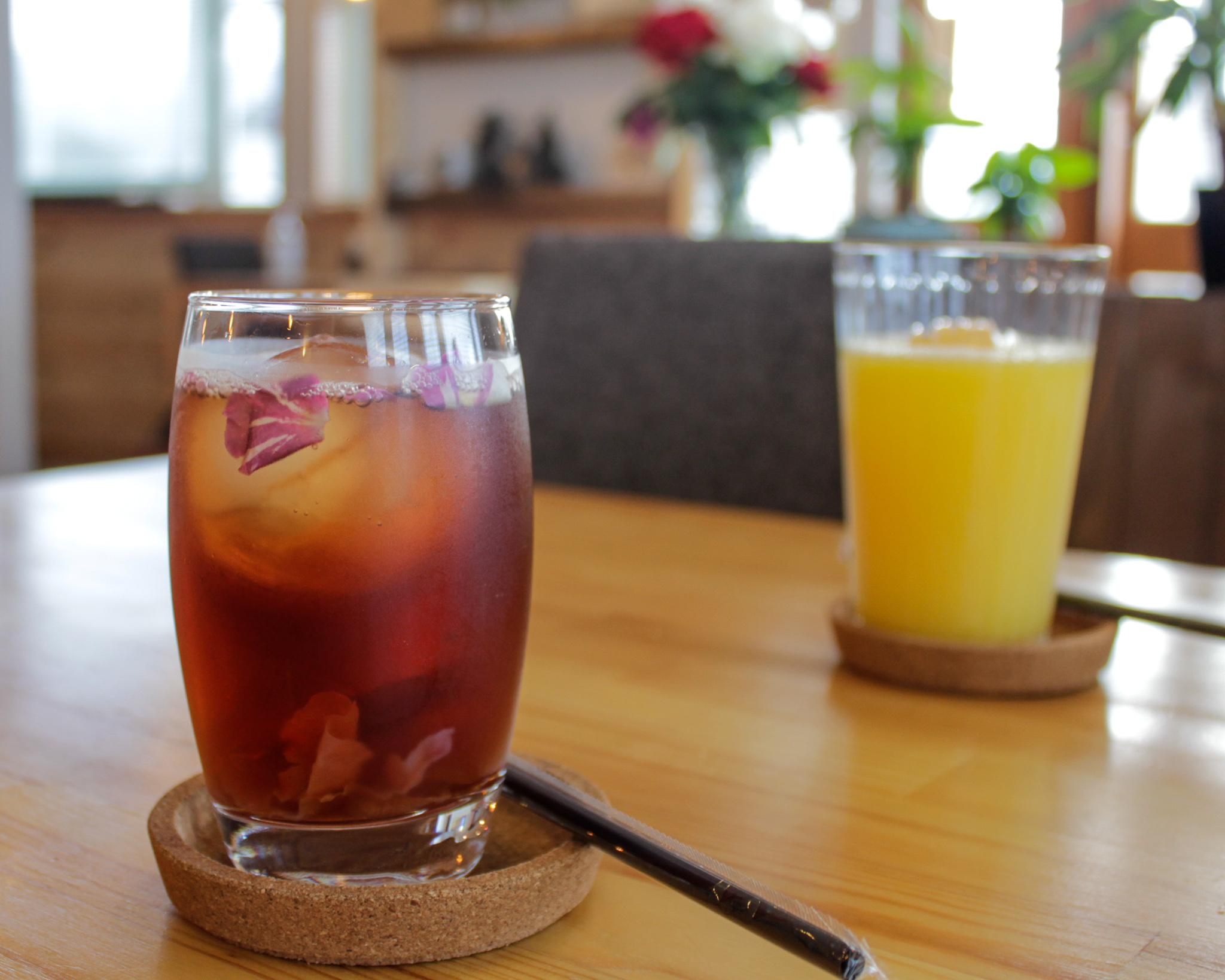 自家製シロップを使ったバラソーダとバラティーでは、火入れの花びらと生の花びらの両方を味わえ、香料不使用の天然のバラの香りと味わいを楽しんでいただきました。
