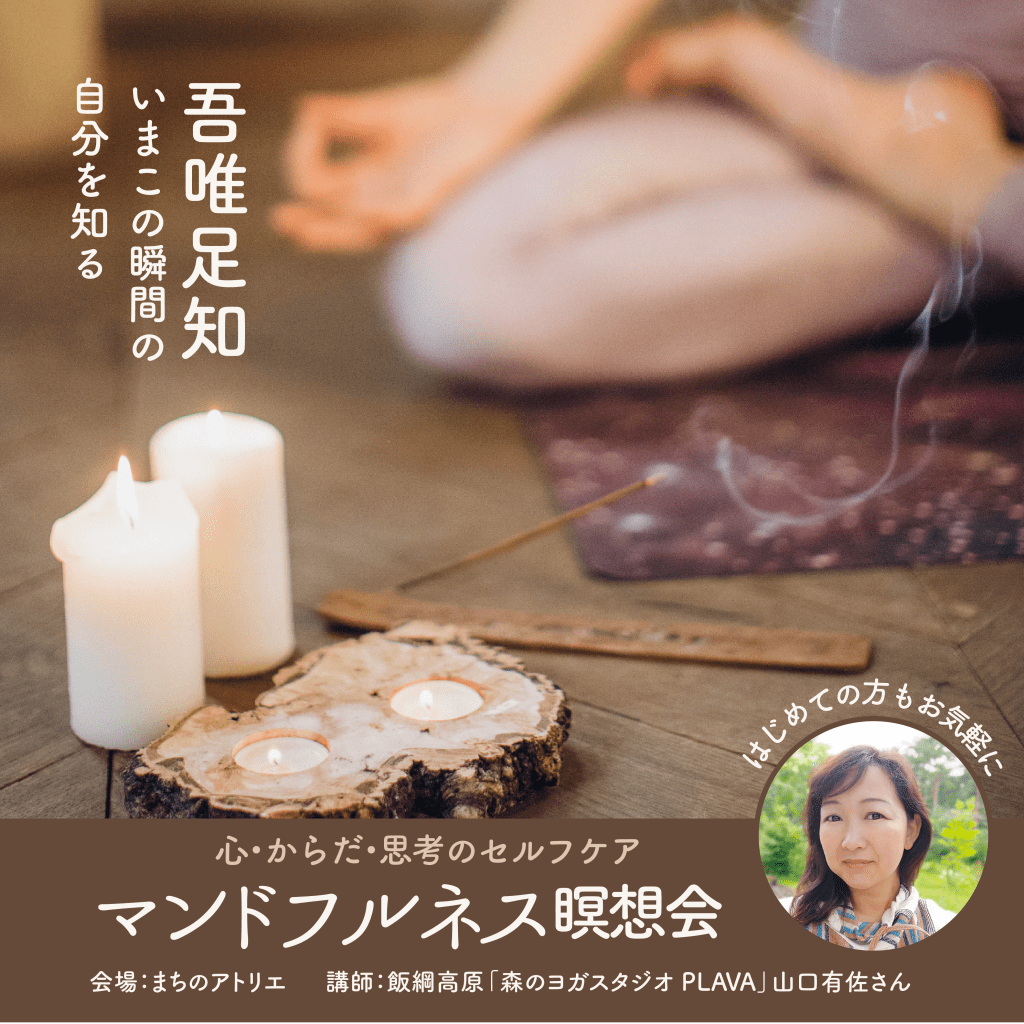 「飯綱高原 森のヨガスタジオPLAVA(プラヴァ)」の山口有佐さんをお招きし、ストレス軽減や脳を休める効果があるマインドフルネス瞑想会を開催します。