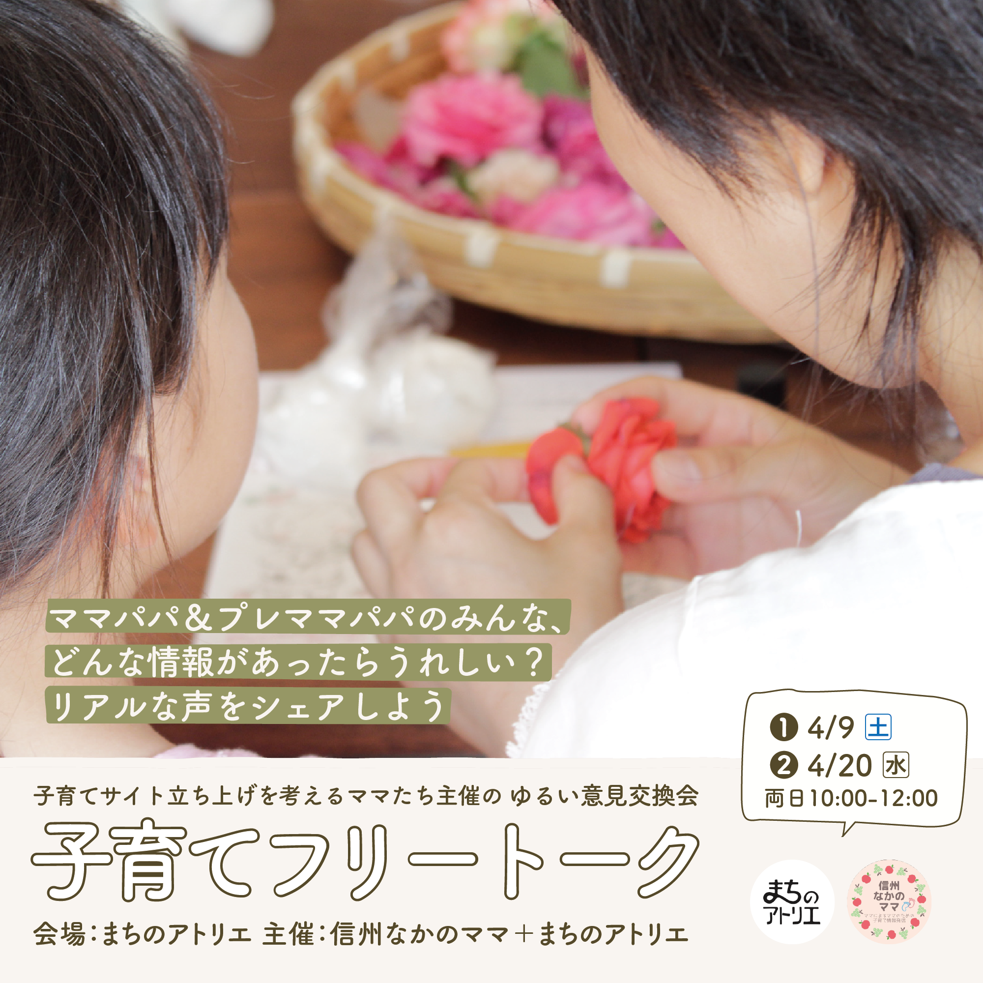 信州なかのママさんと共同で、子育て情報サイト立ち上げのためのフリートークを開催します!