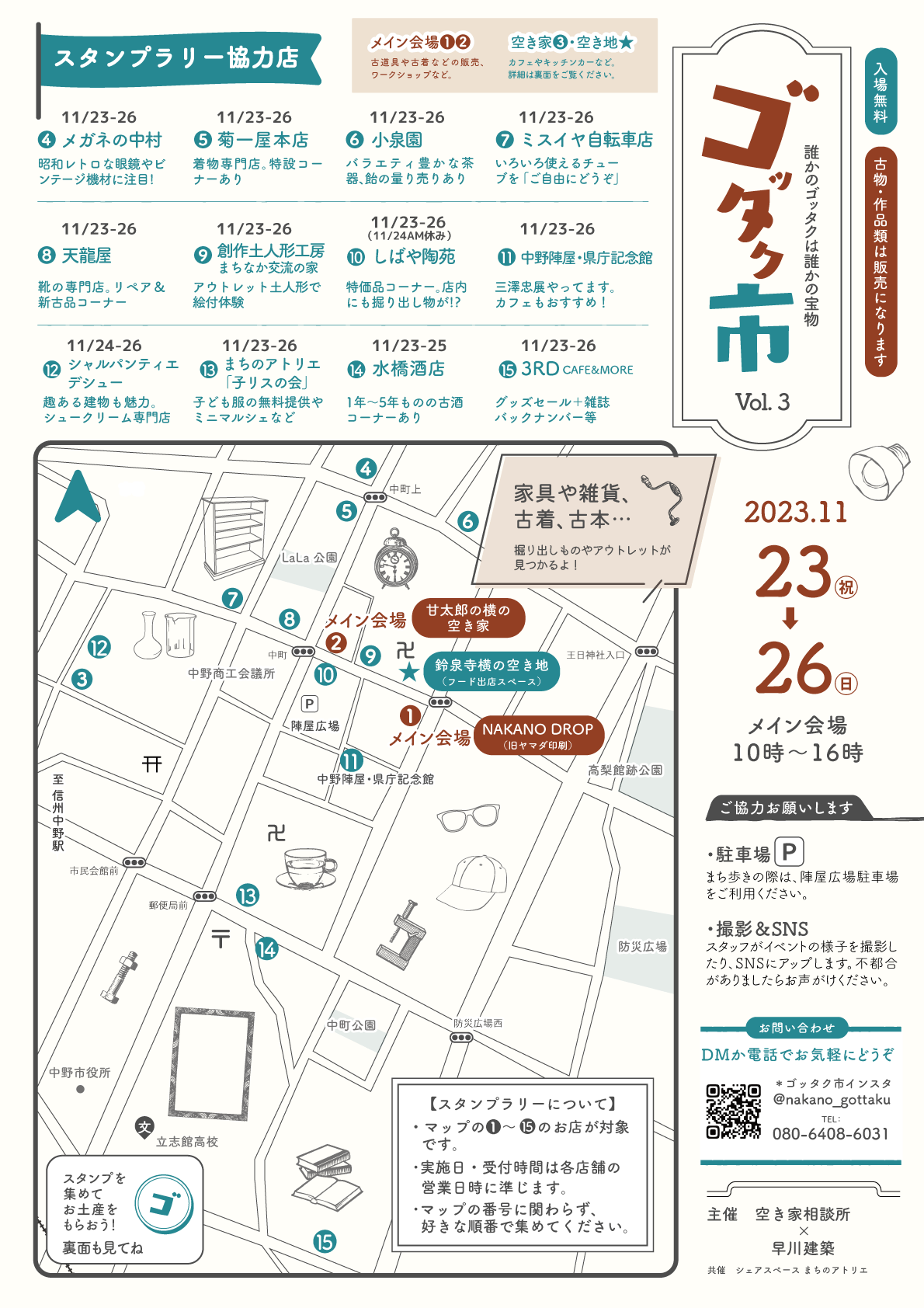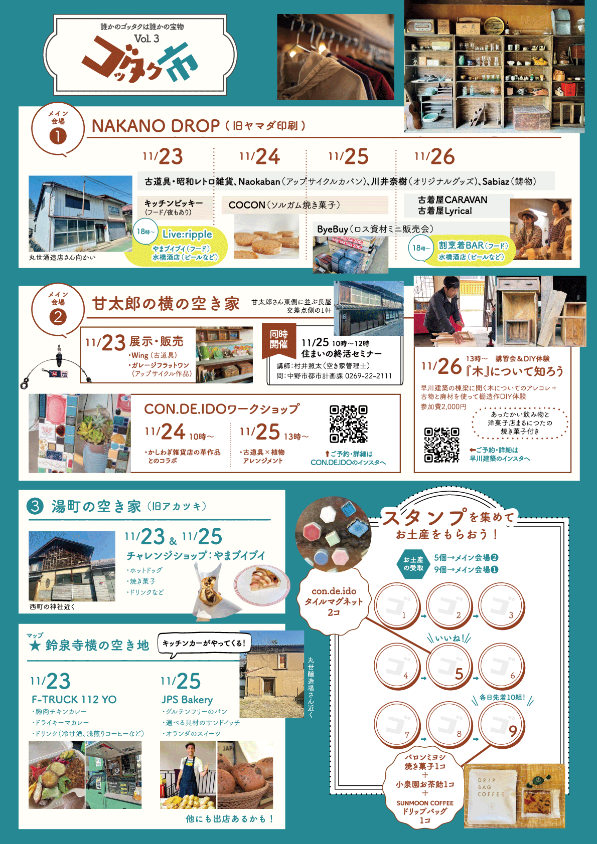 同日、中野市街地で「ゴッタク市+スタンプラリー」も開催予定!
