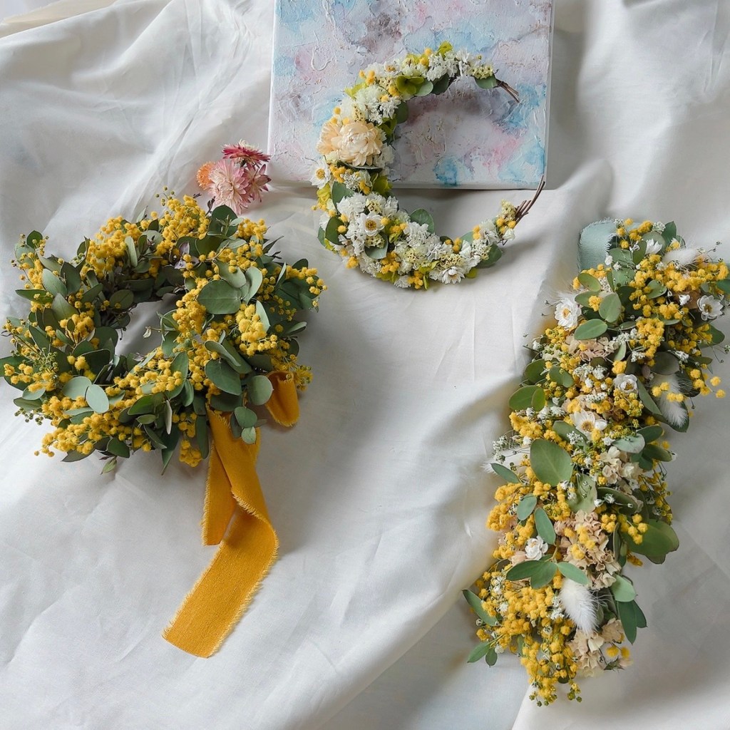 今回は、さわやかで少し甘い香りのミモザとユーカリでリースをつくります。誰もがときめく春色のリースを飾りませんか。