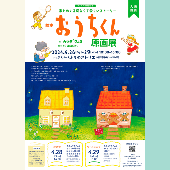 『おうちくん』というすてきな絵本の原画展。作家カワダクニコさんを迎えるトーク&ワークショップも!