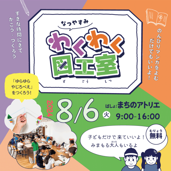 長期休みの小学生に、手軽な工作ができる場所、のんびり過ごせる場所を提供します。