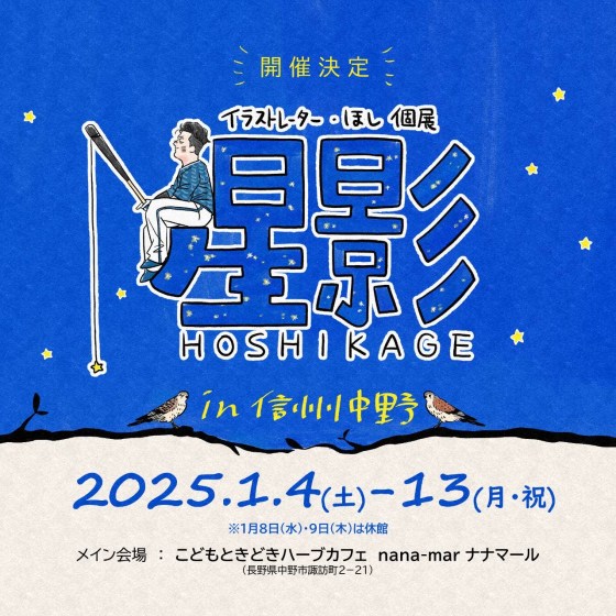 1/4(金)〜1/13(月祝)、中野市ゆかりのイラストレーターほしさんの個展が中野市で開催されます!