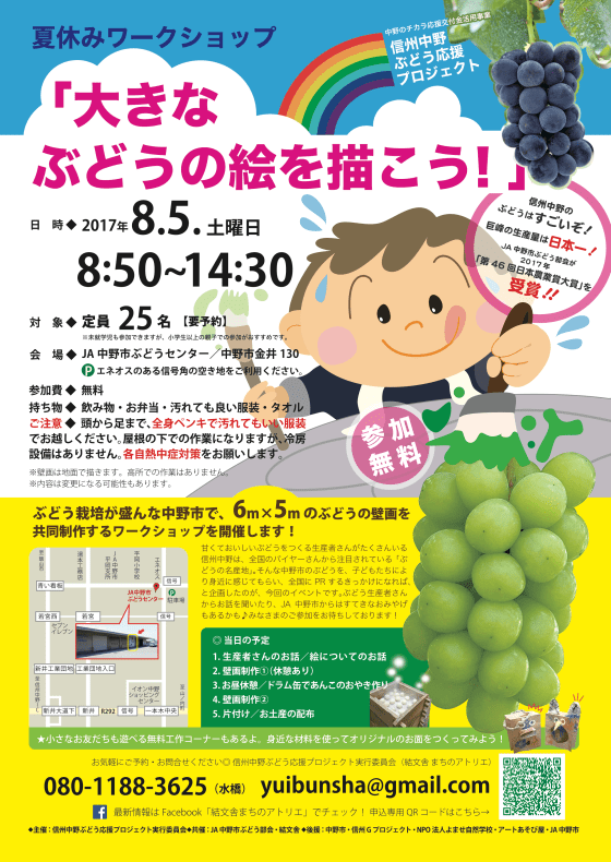 ぶどう栽培が盛んな中野市で、6m×5m の大きな壁画を共同制作するワークショップを開催します!