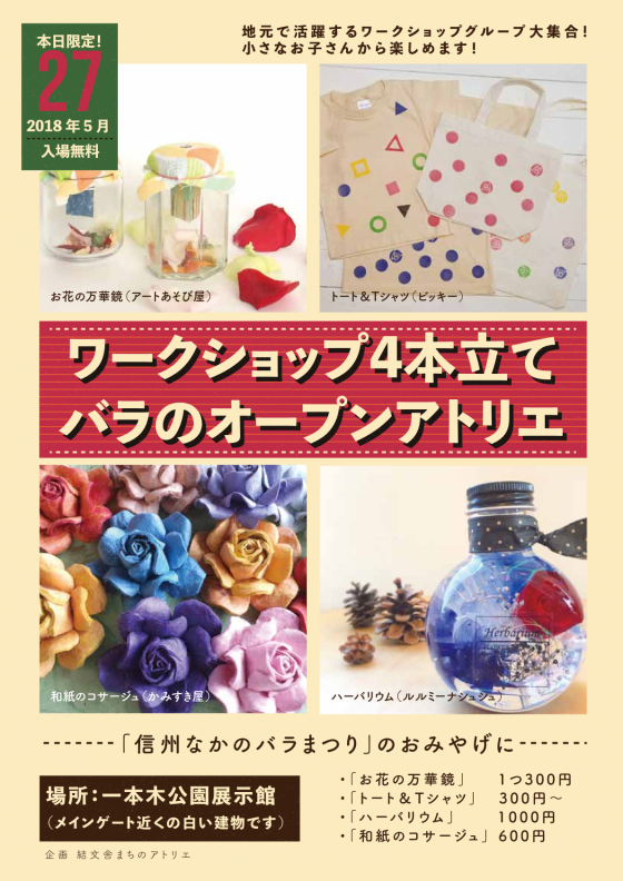 「信州なかのバラまつり」会場で、子どもから大人まで楽しめるバラをテーマにしたワークショップを開催します。